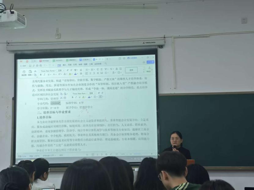 会计系主任王秀霞老师、财管系主任张丹老师、审计系主任陈元媛老师、资产评估系胡婷婷老师依次登台,针对本专业人才培养方案的变化与创新点进行解读: