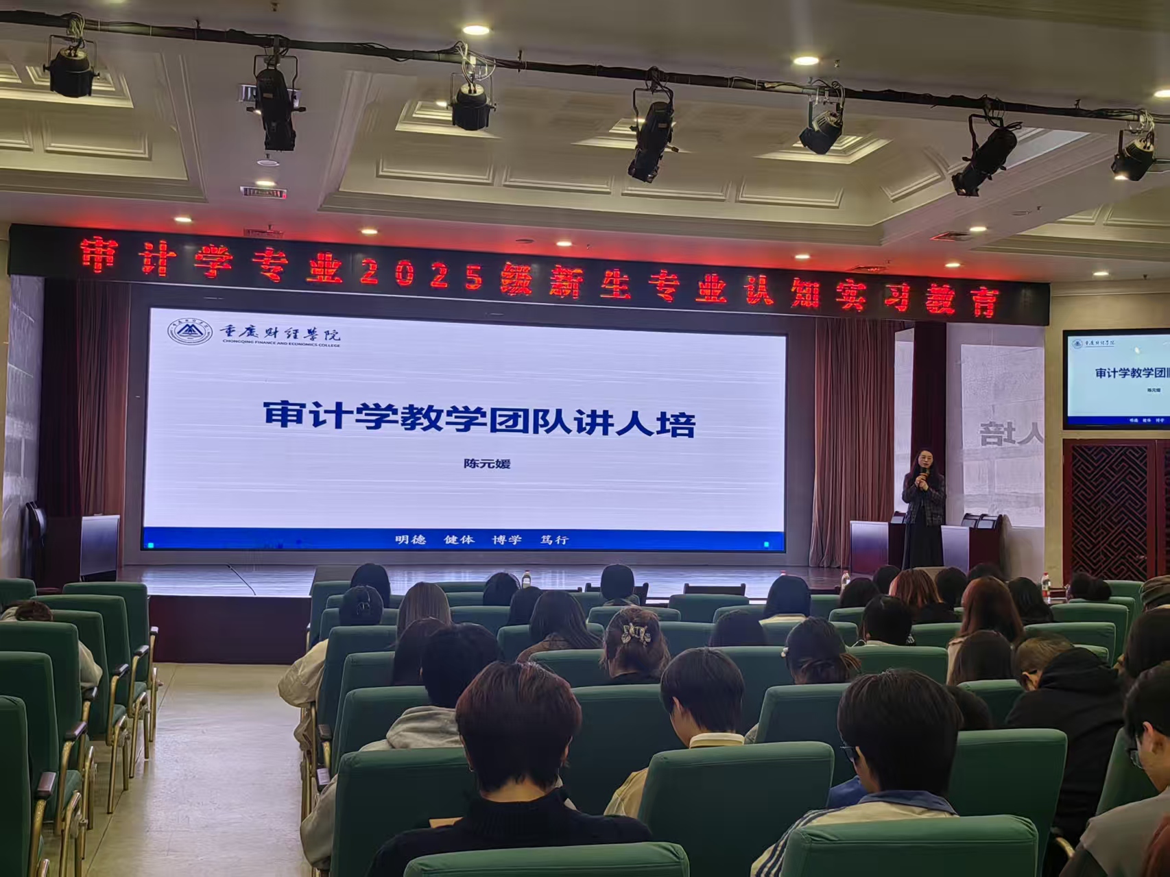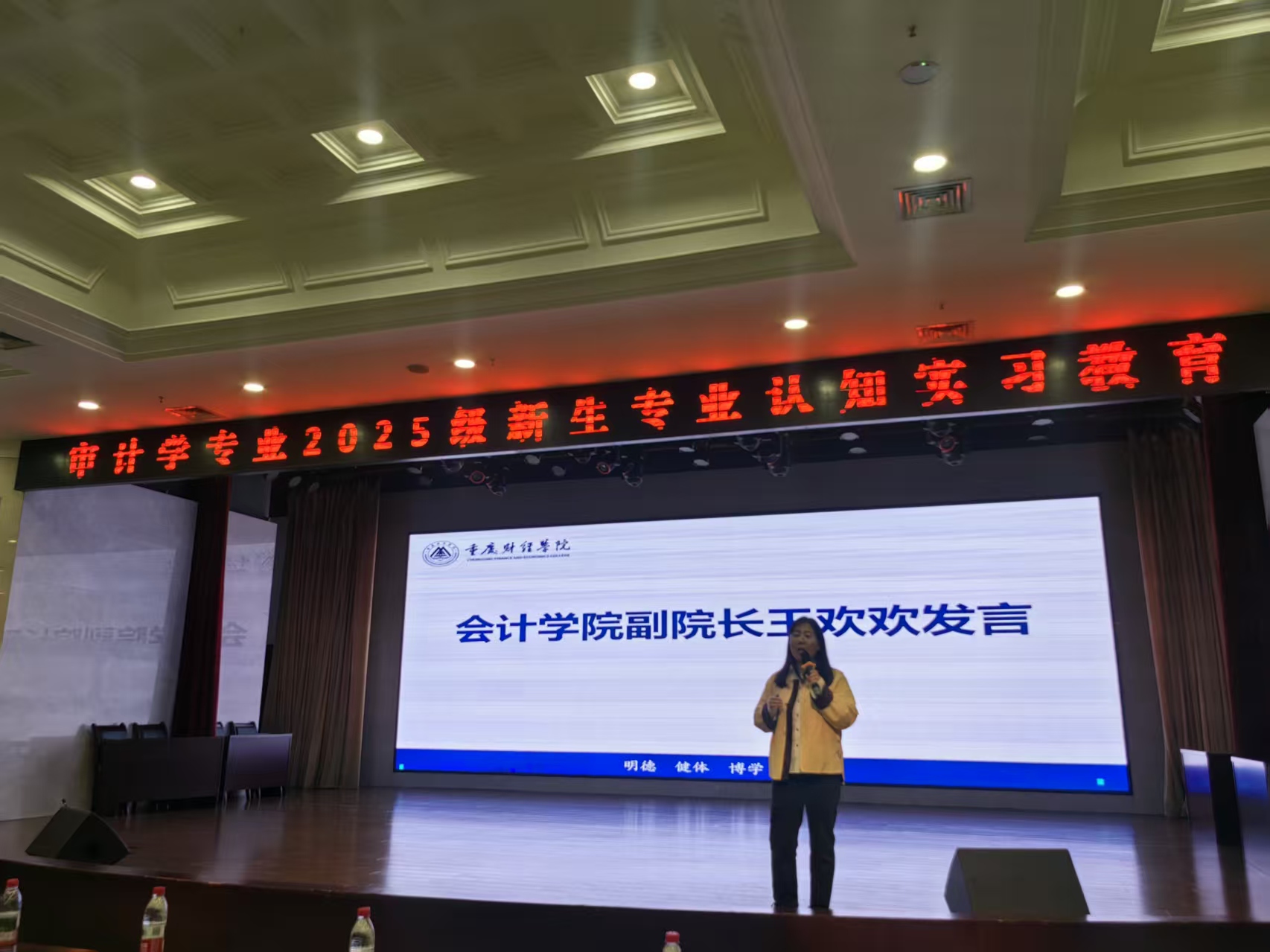 2025年10月27日,会计学院会计审计系分两场在1605教室和学术报告厅开展审计学专业认知教育活动,分别面向25级大一新生和23级专升本学生。活动由会计审计系副主任杨玉涵主持,学院领导、专业负责人及班导师共同参与,旨在帮助同学们全面了解审计学专业特色,明确学习目标,提前规划职业发展。