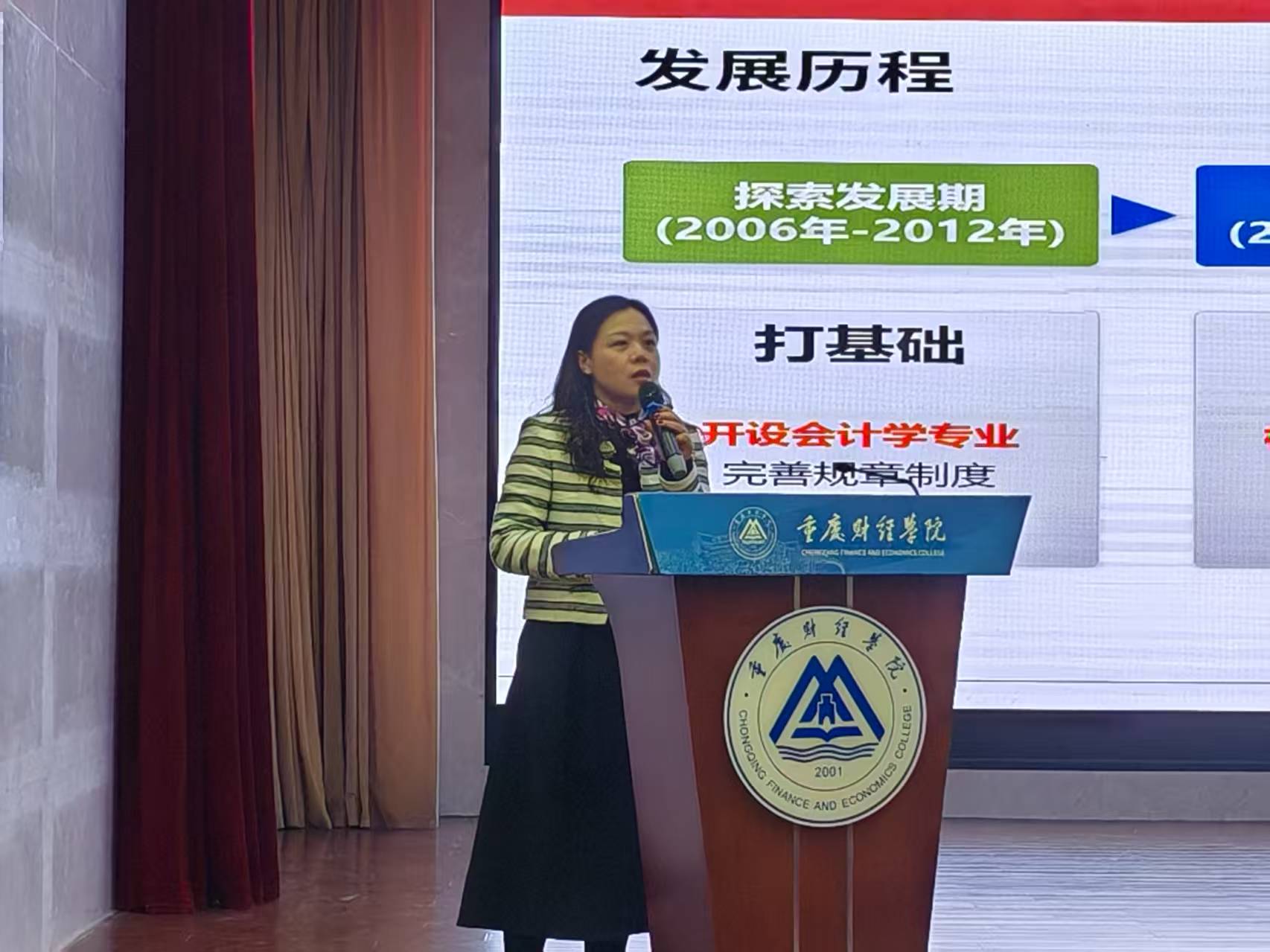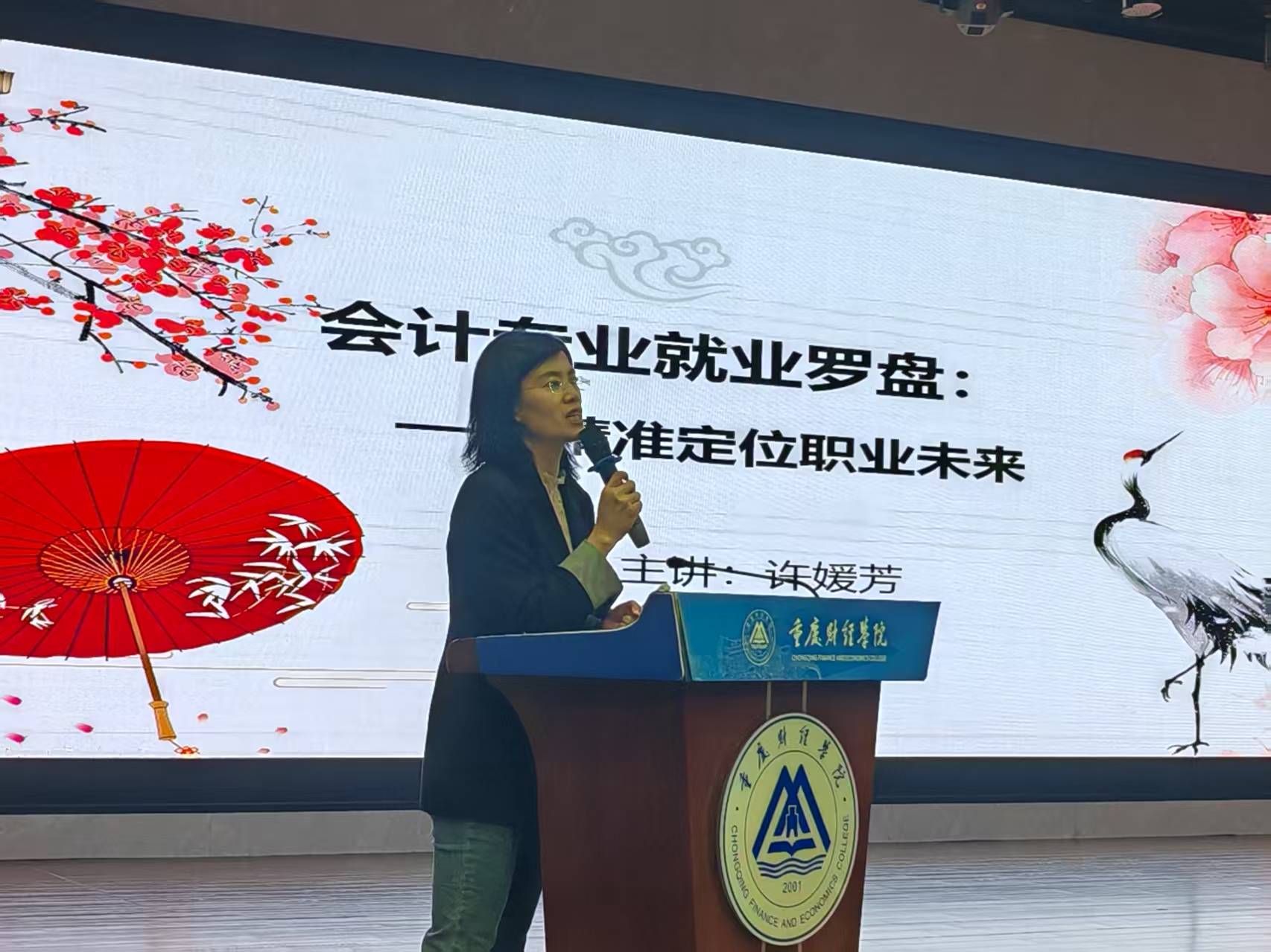 紧接着,会计学专业负责人吴玉梅老师聚焦“人才培养方案” 进行系统解读。她以 “培养数智时代高素质财会人才” 为核心,详细介绍了学院打造的 “实训、实习、实践、实战、实创”“五实” 专业实践教学体系,重点提及与 10 余家企业共建的实习基地、“智能财务沙盘模拟”“企业真实案例分析” 等特色课程,为新生清晰勾勒出 “大一打基础、大二练技能、大三进企业、大四促就业” 的四年学习蓝图,让同学们对专业学习有了更明确的目标。