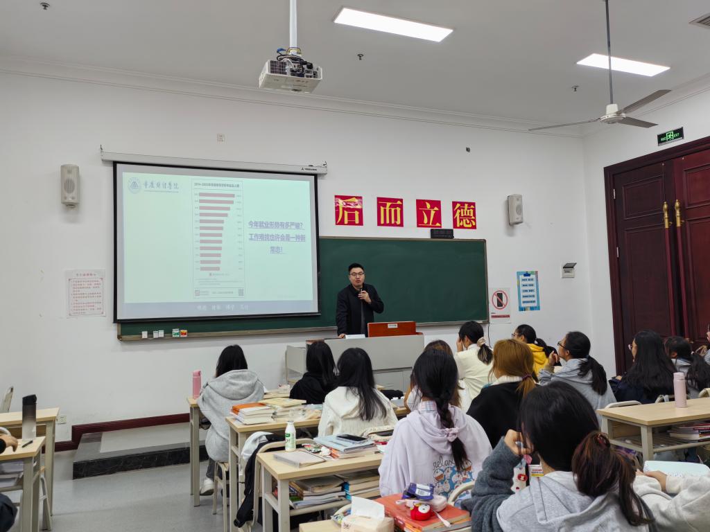 活动伊始,鲍晓敏副院长以“数智时代财会人才的核心竞争力”为切入点开启致辞。他结合近年财会行业就业数据,指出“基础核算岗位需求缩减、复合型数据财会人才紧缺”的行业现状,勉励新生“跳出传统会计思维局限,主动拥抱智能财务、数据分析等新领域,以‘专业+技术’的双重能力应对市场需求”,为新生们敲响职业规划的“警钟”,也点燃了大家探索专业新方向的热情。