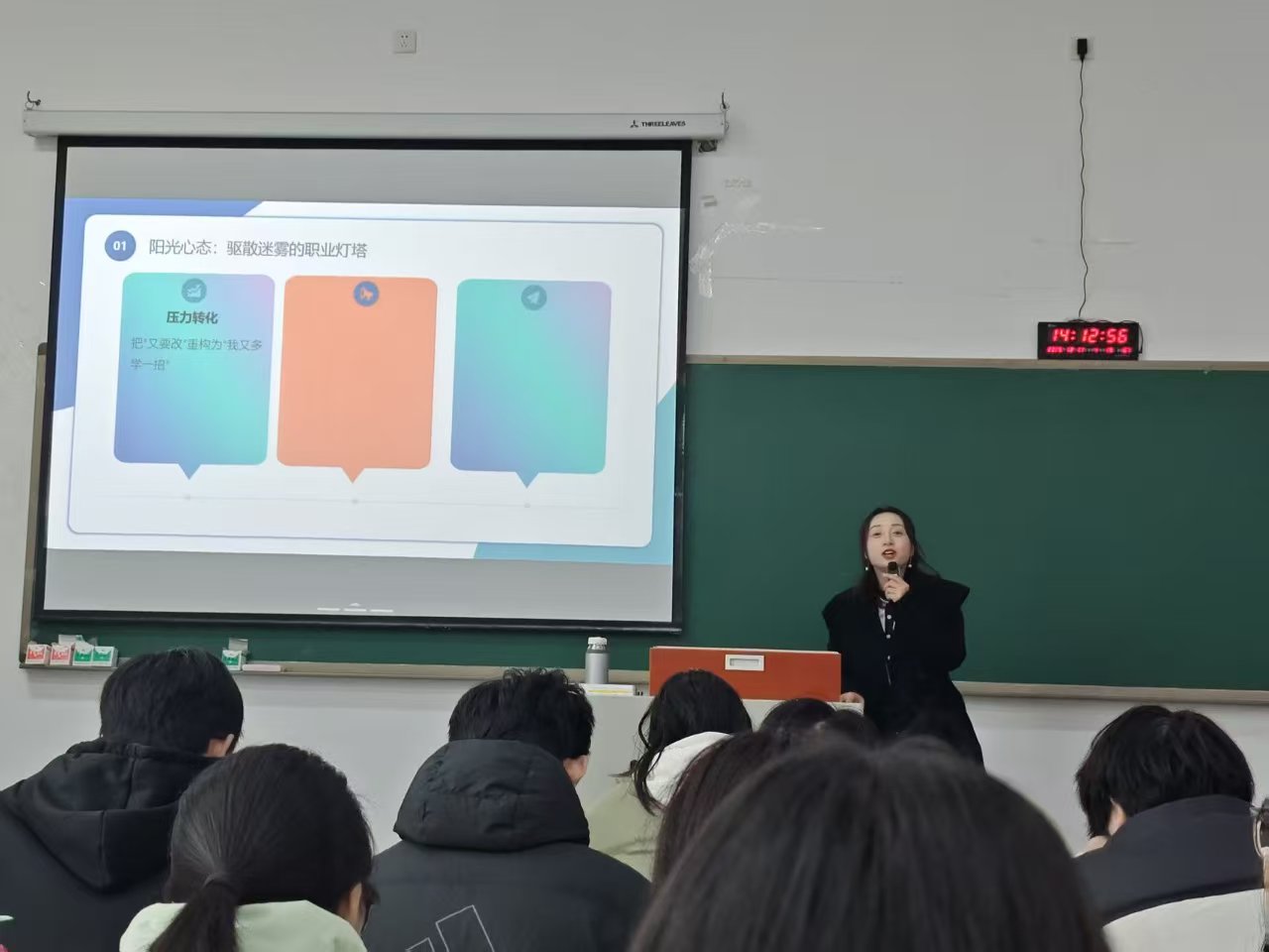 下午14时,系列活动持续升温。在1613教室,高级人力资源师、职业生涯规划师于洋以“点亮职业之光”为主题,为23审计一班、二班学生带来职业素养提升与阳光心态构建培训。于老师以“同龄视角”分享真实案例,拆解阳光心态、责任心、感恩三大核心素养,提出“闭环思维是职场责任心的具象化”,总结四条职业沟通铁律,助力学生实现从“校园任务思维”到“职场结果思维”的转变。