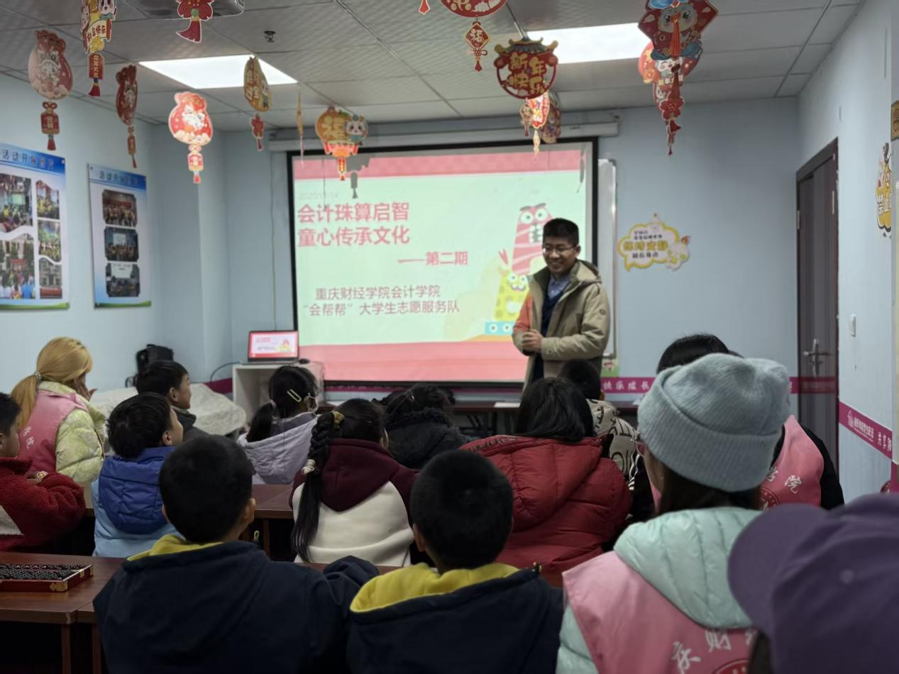 为积极响应“一院一镇街”校地协同育人机制,推动大学生进社区实践活动的深入开展,充分发挥高校专业优势服务社区发展,2025年12月14日,重庆财经学院会计学院汪骄阳老师带领15名2023级会计学专业学生前往巴南区东城社区,成功举办“会计珠算启智,童心传承文化”公益珠算教学活动。