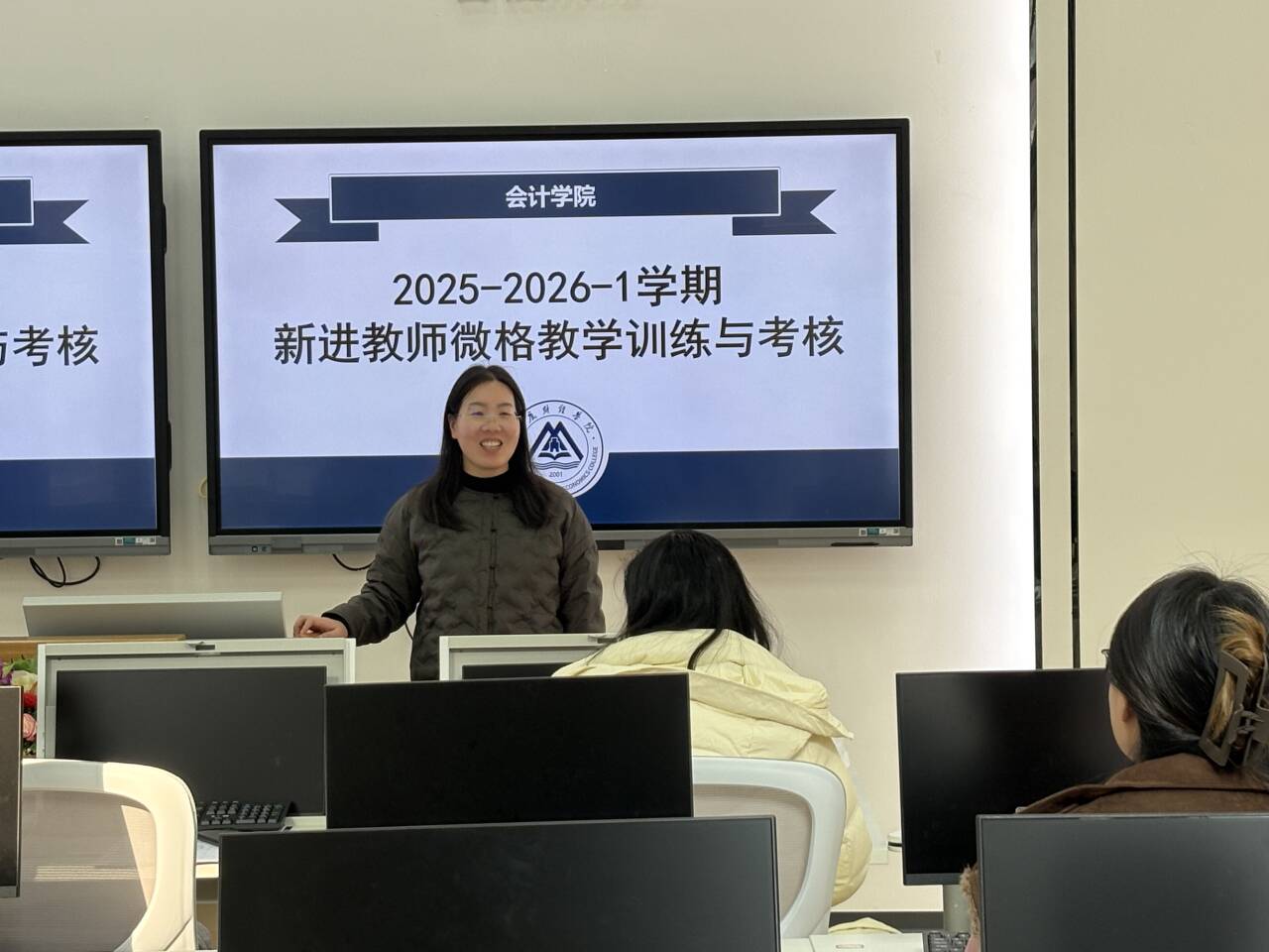 为夯实青年教师教学基本功,加速新教师角色转变,打造高水平、专业化的师资梯队,2025年12月18日下午,会计学院在1206教室隆重举办了新教师微格教学训练营。副校长陈旭教授亲临现场指导,会计学院副院长王欢欢、专业负责人代表毛翠微、系主任代表唐蕾及院级督导代表石阿慧组成专家评委团,对学院6位新入职教师的教学能力进行精准把脉与悉心指导。