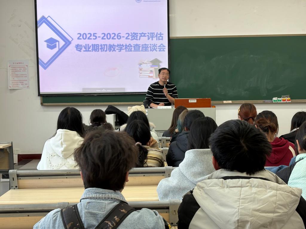2026年3月10日下午,资产评估专业在教学楼1407教室召开期初教学检查座谈会。会议由杨洋老师主持,周玲老师出席,2023级、2024级、2025级每个班级各3名学生代表参加座谈。
