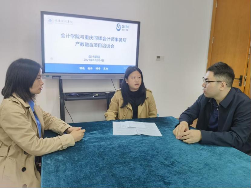为精准对接行业人才需求,破解高校人才培养与企业实际用人脱节难题,10月25日,我校会计学院副院长鲍晓敏、会计审计系主任陈宇虹与重庆同辉会计师事务人事专员所围绕产教融合相关事宜开展专项洽谈,就订单班合作框架、实习安排、课程共建等内容达成共识,预计11月正式签订合作协议。