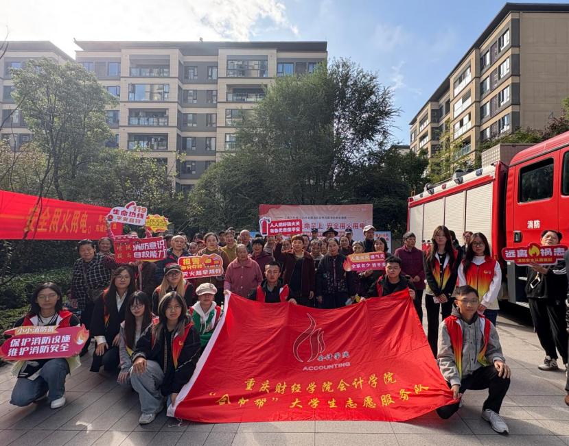 为深化“一院一镇街”校地共建,筑牢基层消防安全防线。2025年11月4日上午,我校会计学院“会帮帮”大学生志愿服务队前往界石镇东城社区与界石镇消防救援站、江南万科城物业服务中心组成一支青年消防宣传队伍联合开展“全民消防·生命至上--安全用火用电”主题消防安全演练活动。活动立足校地资源互补优势,以实景演练为抓手,着力推动社区居民与大学生从安全意识到实战技能、从知识普及到行为自觉的全面提升,为校地协同筑牢安全屏障注入青春动能。