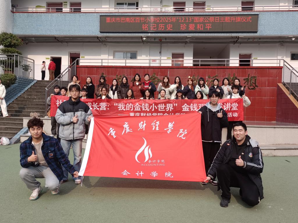 为践行高校社会责任,赋能青少年财经素养教育,12月10日下午,重庆财经学院会计学院师生团队走进巴南区百节小学校,为六年级1班全体学生开展了一堂主题为“我的金钱小世界”的财商启蒙课。活动以“财智成长,守护未来”为主线,构建“认知启蒙—互动实践—习惯养成”三层教学体系,通过系统性课程设计,助力青少年树立理性金钱观,筑牢金融安全认知基础。
