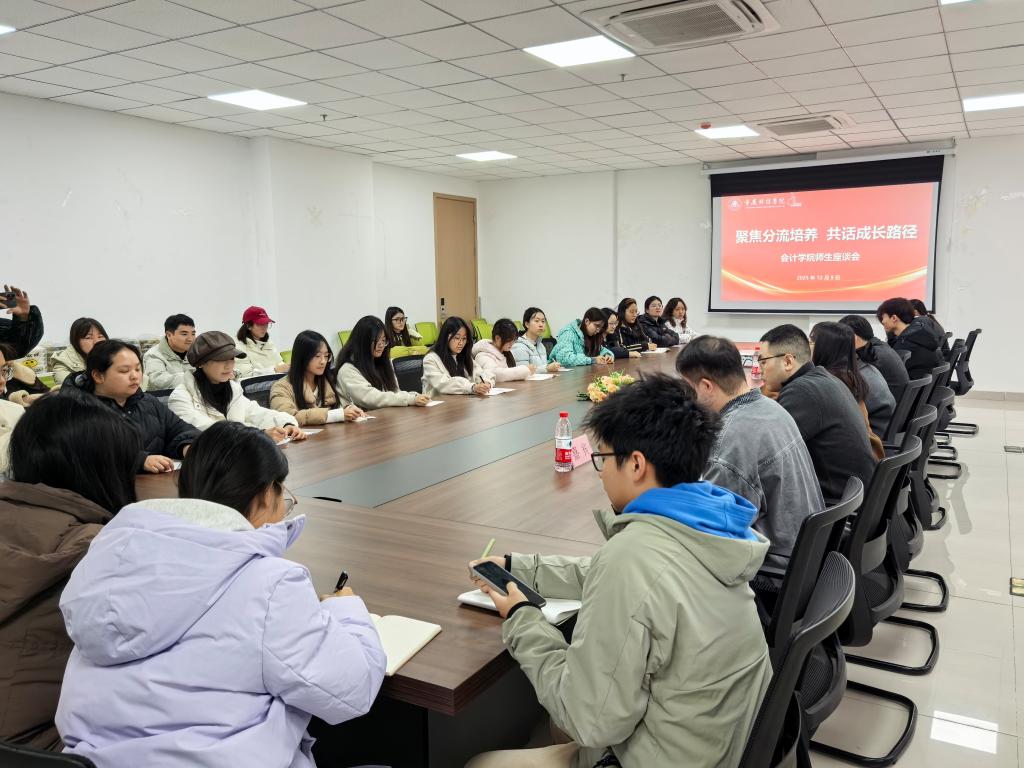 为搭建师生“零距离”沟通平台,回应学生在专业学习、分流培养、职业规划等方面的核心诉求,凝聚师生发展共识、汇聚协同育人合力,12月9日,会计学院“聚焦分流培养,共话成长路径”师生座谈会在G1-109教室温情启幕。重庆财经学院副校长兼会计学院院长陈旭、会计学院党总支书记宋钰静、常务副院长陈凤、党总支副书记冉光波、副院长王欢欢、鲍晓敏应邀出席,与各年级学生代表齐聚一堂,以面对面交流的形式,围绕学院建设发展、分流培养实施、个性化成长路径等议题深入探讨,为学院人才培养质量提档升级注入师生智慧。