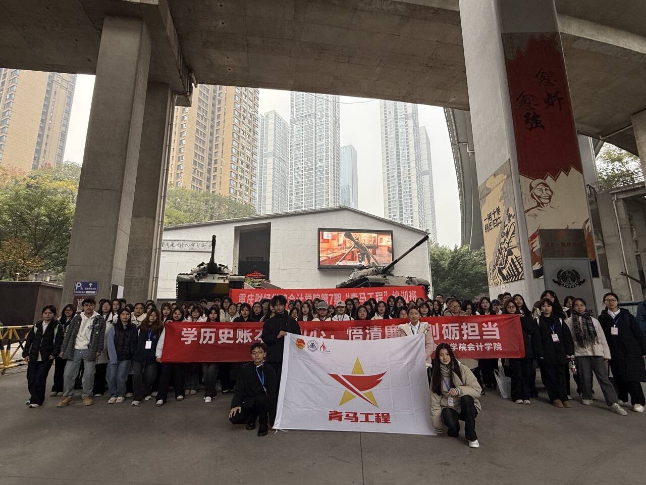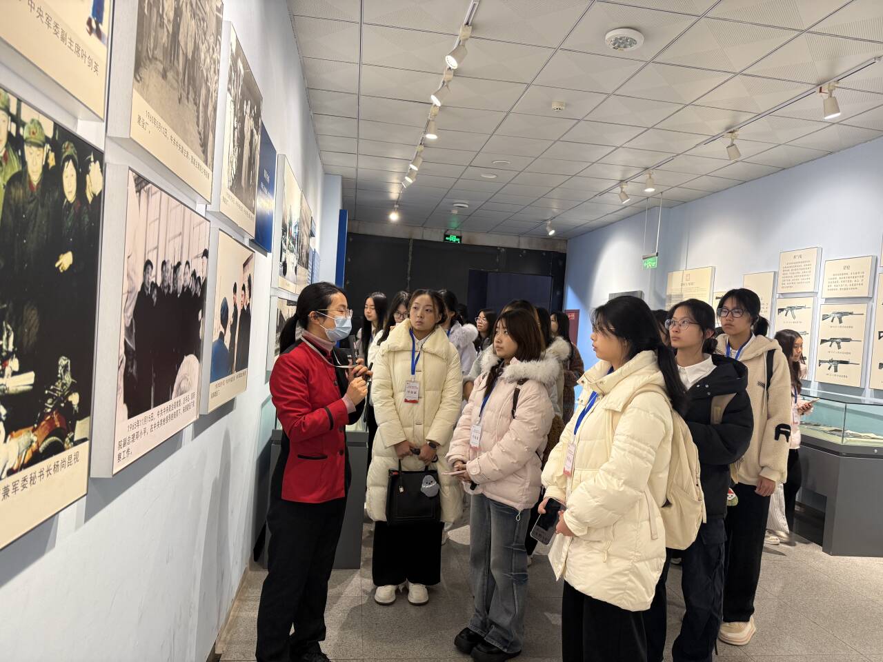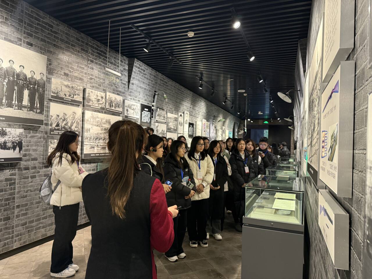 为贯彻落实党的二十届四中全会精神,构建沉浸式青马课堂,以“面对面”的形式提升“青马工程”的鲜活性,12月11日,会计学院第7期“青年马克思主义者培养工程”培训班全体学员在学团办主任谭白冰和辅导员吴忧、唐鹏的带领下赴建川博物馆开展“走进展馆寻‘兵工青年’”研学课程。
