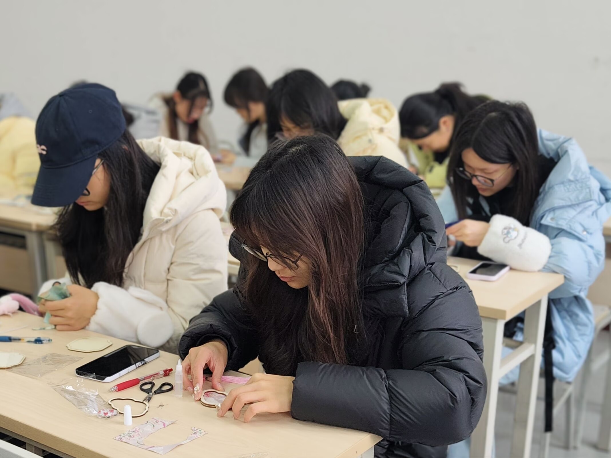12月11日上午,“指尖暖情·心灵治愈”手工减压活动在专注与宁静中于1514教室进行。同学们在心理负责老师的简要引导后,沉浸于个性冰箱贴的制作。手工创作过程作为一种表达性艺术疗愈形式,有效引导参与者将注意力集中于当下,通过双手的劳作舒缓焦虑、表达情感。活动不仅让同学们体验了创造的乐趣,更在忙碌的学业间隙,提供了一处可贵的“心灵栖息地”,帮助大家在协作与交流中收获内心的平静与温暖。
