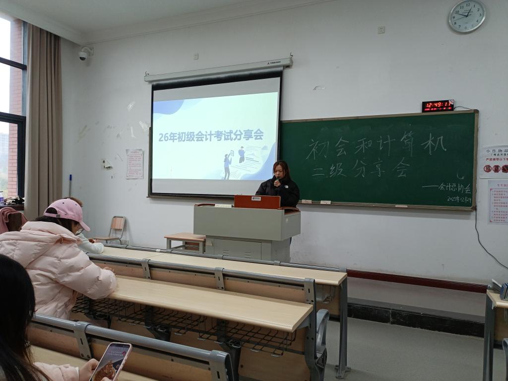 为帮助同学们精准把握初级会计考试与计算机二级考试的备考方向,明晰报考关键节点与应试技巧,提升学业竞争力与职业发展潜力。2025年12月24日,会计总协会于教学楼1507教室成功举办了初会、计算机二级分享会。本次分享会由会计总协会审计分协会副会长唐于淋主讲,会计总协会全体成员参与。