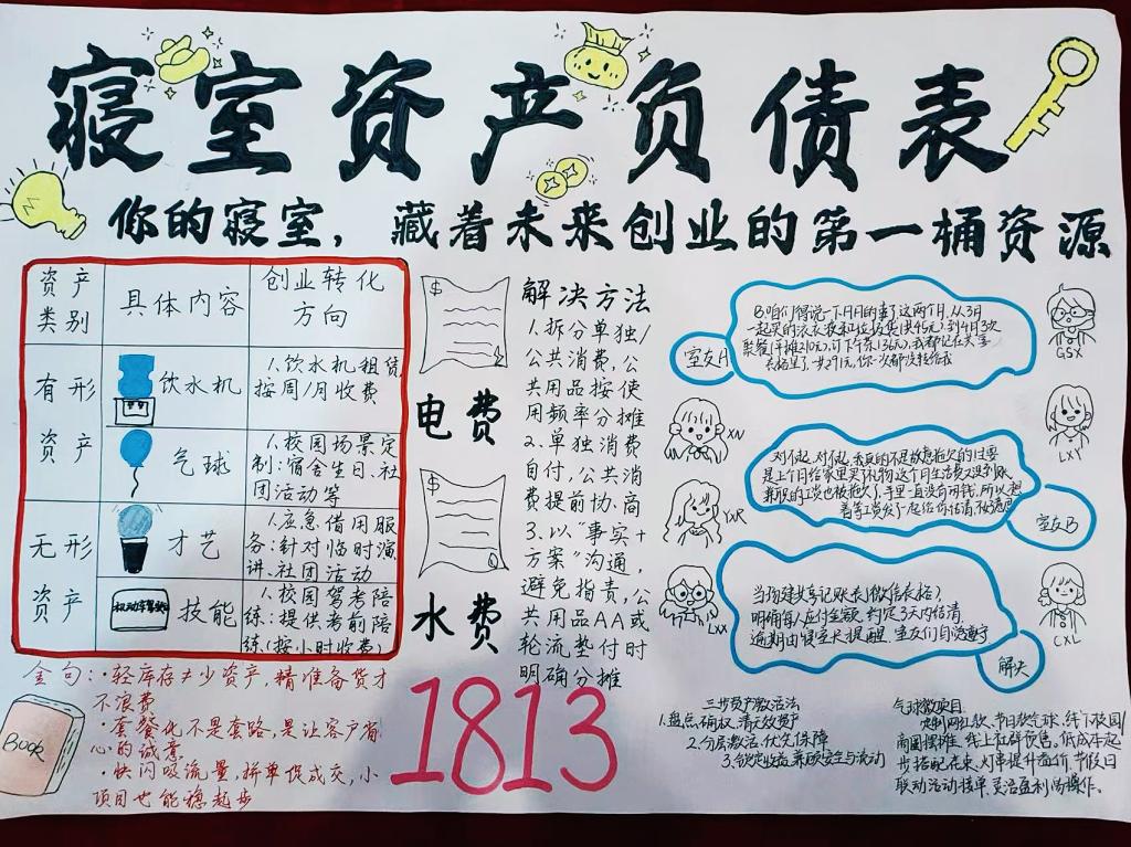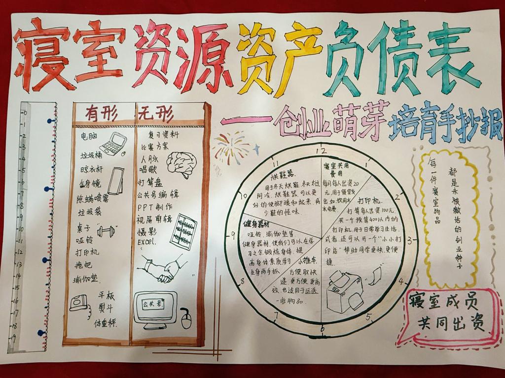 2025年12月5日至12月10日,会计学院楼管会组织“‘账’量寝室温暖,‘计’划青春未来”系列活动之“寝账绘创·资产负债表手抄报大赛”正式开启。本次活动创新提出“寝室是最小创业团队”的核心理念,引导同学们将会计专业知识与创新创业思维深度融合,以手绘报表的形式,重新审视和挖掘寝室生活中的资源价值与发展潜力。