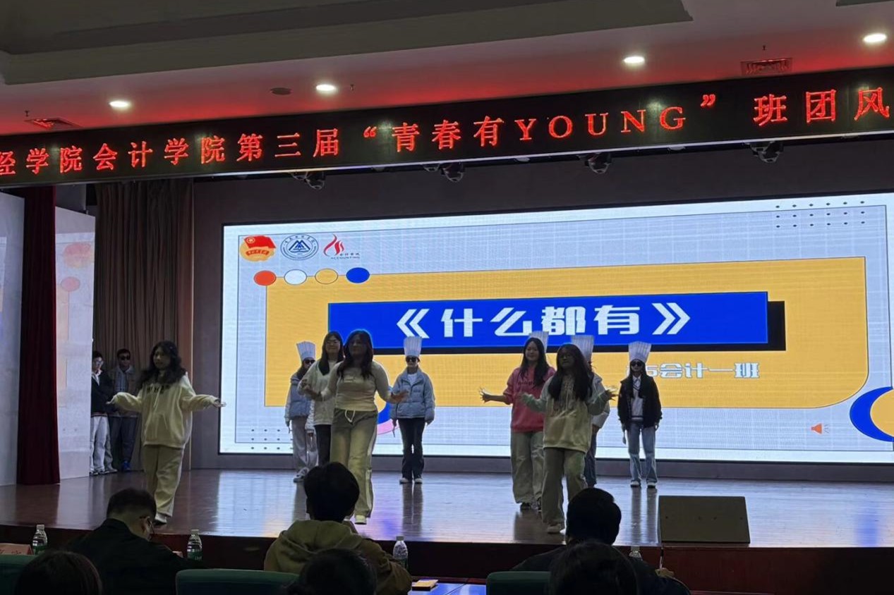 紧随其后的25级会计一班打破传统表演边界,“相声+舞蹈串烧”《什么都有》,幽默段子与动感舞步碰撞出双重惊喜,用幽默与活力诠释青春多元,让热情席卷全场。
