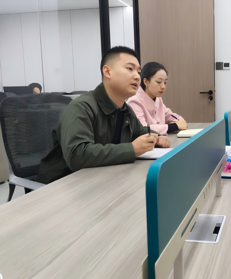 协同共育:以项目为载体深化融合育人。双方在讨论中一致认为,校企合作要在党建引领下实现“真融合、深协同”。廖龙豪建议,学院可在企业建立“党员示范岗”与“青年实践基地”,通过双导师制推进项目化教学,让学生在真实案例中强化业务能力与政治意识。胡婷婷回应,学院将依托党支部力量,将企业党建资源引入课堂,推动“双师型”教师共育计划,形成“理论教学+岗位实践+红色引航”的三维育人模式,全面提升学生综合素质与就业竞争力。
