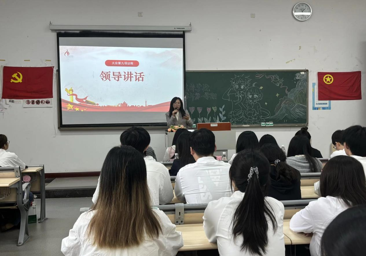 会议最后,党总支书记宋钰静发表讲话。她首先充分肯定了去年在学生工作中取得的优异成就,对全体学生干部的积极进取、担当作为给予由衷赞扬。同时,她着重强调了学生组织成员应具备的责任担当、服务意识与协作精神,提出三点殷切期望:一是要锚定学院发展大局,聚焦学风建设、校园文化等核心任务,让工作更有针对性;二是要强化各组织协同联动,打破部门壁垒,形成工作合力;三是要在实践中锤炼自身能力,以过硬素质服务同学、奉献学院,争做有理想、敢担当、能吃苦、肯奋斗的新时代青年学生干部。