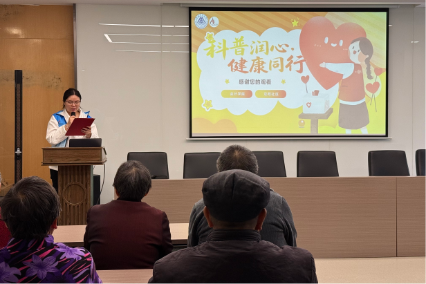 活动伊始,志愿者们与社区工作人员密切配合,引导居民有序入座。随后,我院志愿者通过PPT课件开展讲解,围绕医学常识与消防安全两大主题展开。讲解中,他们不仅普及了高血压防治的“合理运动、控油控盐”日常法则,还提醒居民关注家庭用电用气安全,做到“用气通风、人走火熄、人离断电”,让健康理念与安全意识深入人心。