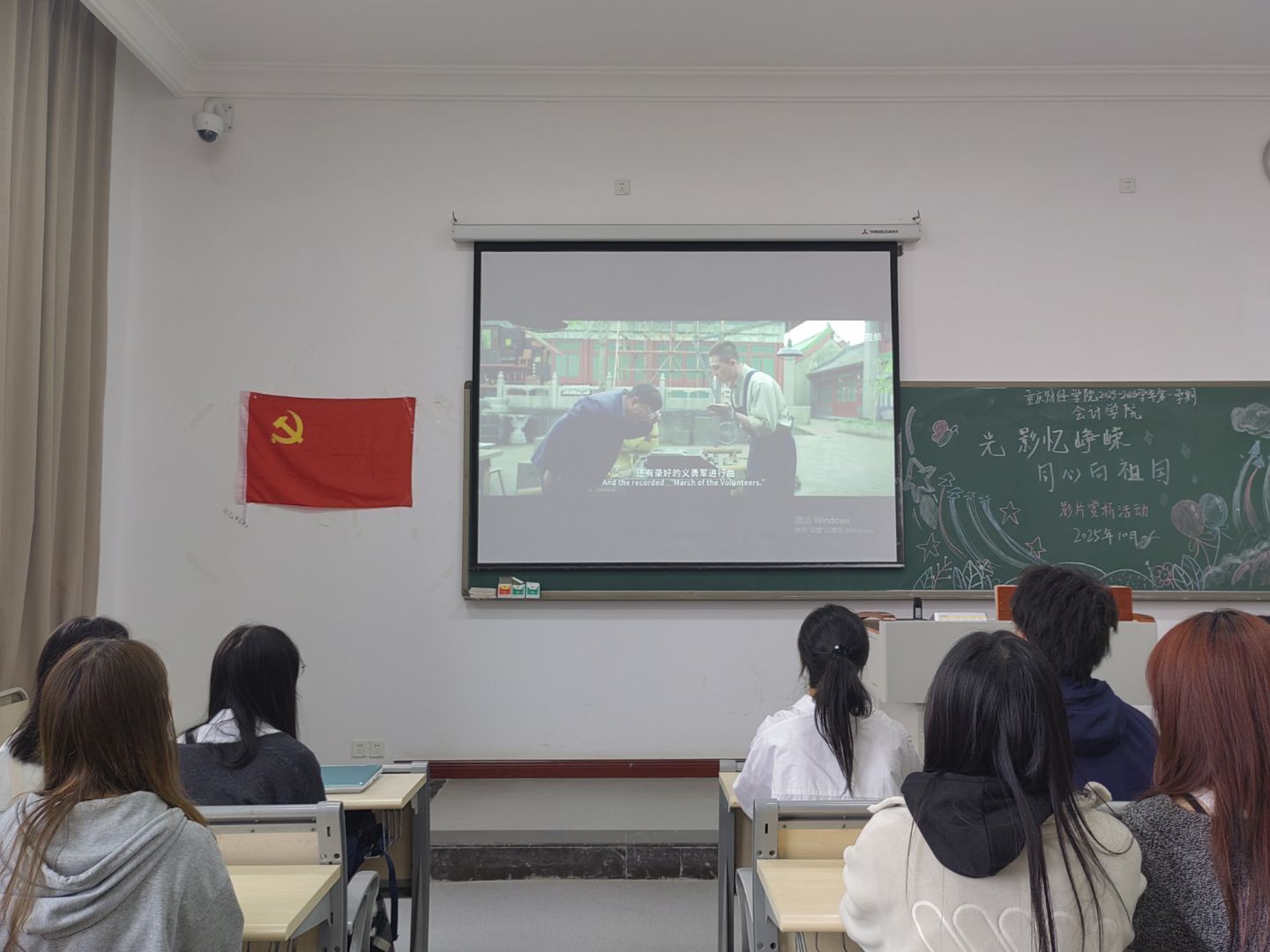为深刻铭记党的光辉历程,弘扬爱国主义精神,巩固党总支党史学习教育成果。2025年11月,重庆财经学院会计学院学生党支部精心策划并顺利开展了“光影忆峥嵘,同心向祖国”影片赏析活动。活动面向全院学生,通过“线上+线下”双线模式,以经典影片为载体,引导青年学子从光影中追忆峥嵘岁月,将个人理想融入国家发展大局,凝聚奋进新时代的青春力量。