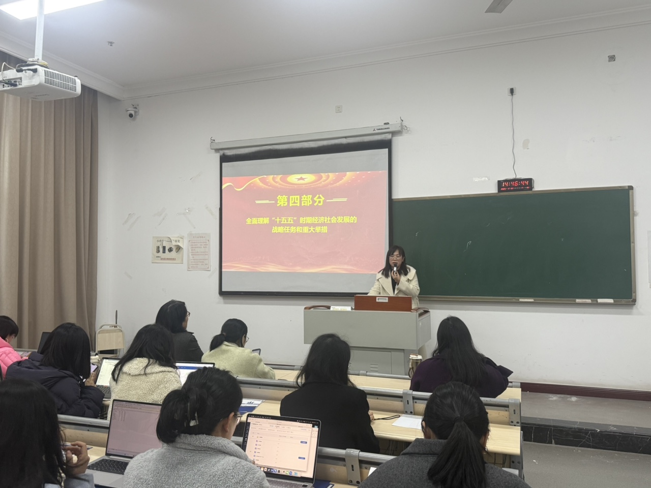 为引导全院广大党员深入理解、全面把握党的二十届四中全会精神,12月24日,会计学院党总支书记宋钰静在1312教室为全体教师党员做专题宣讲。