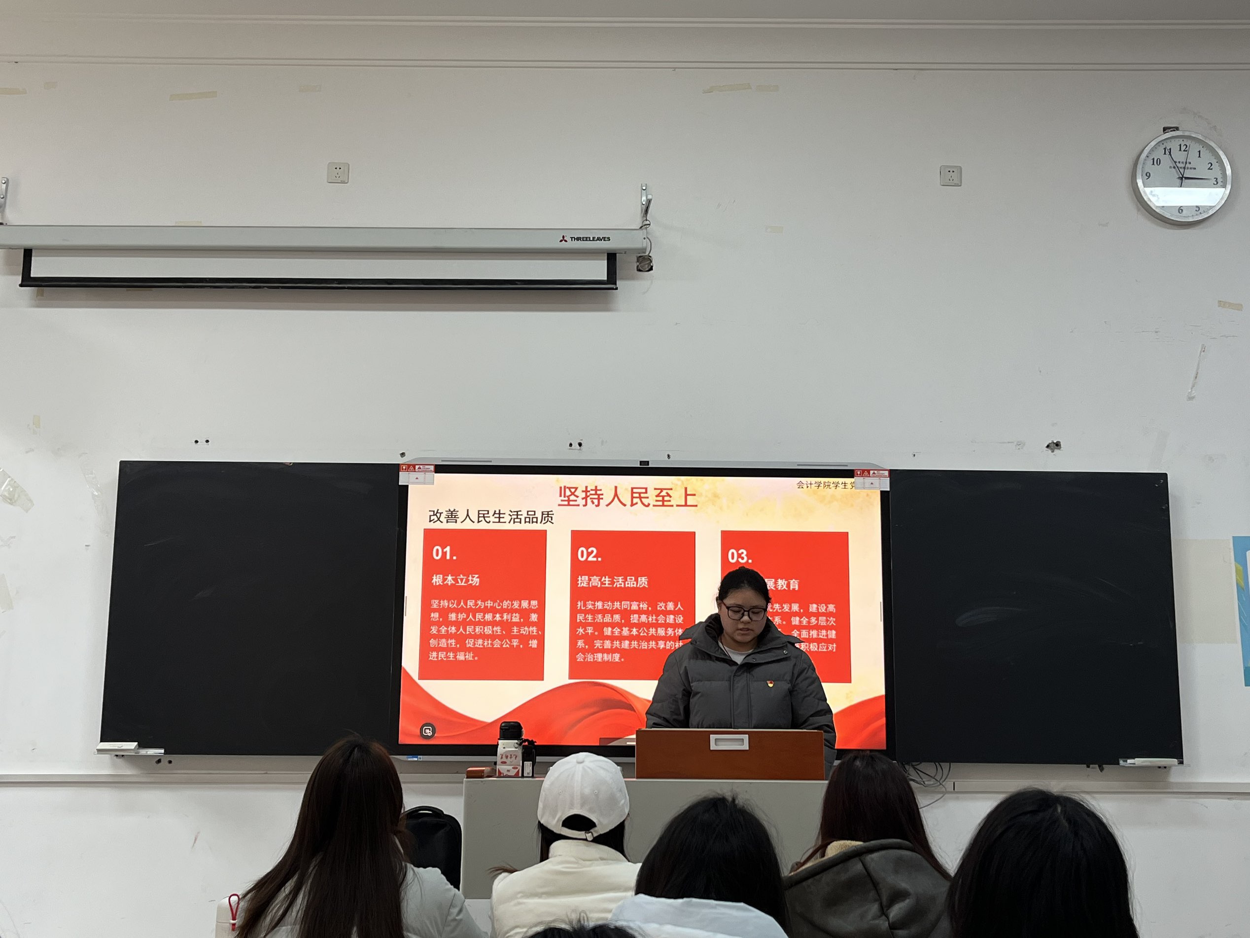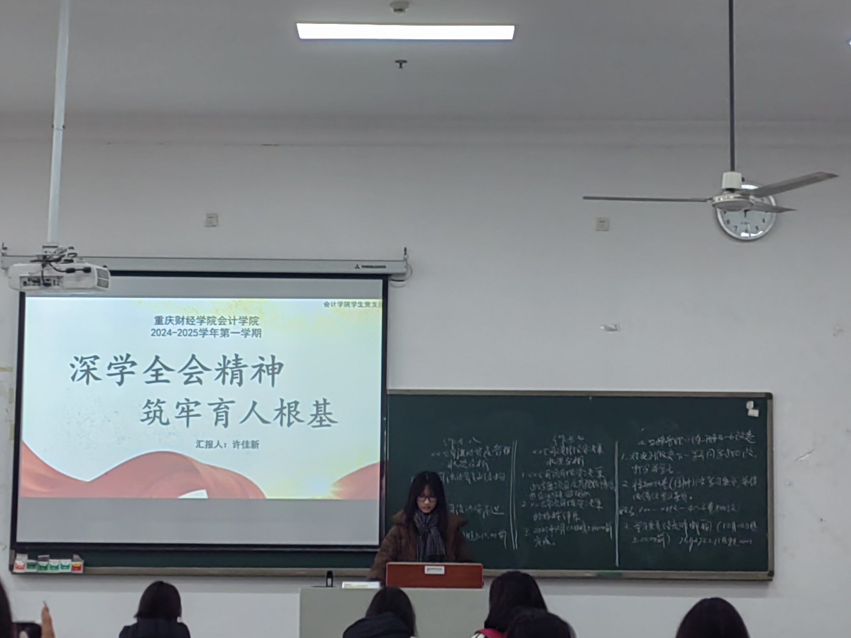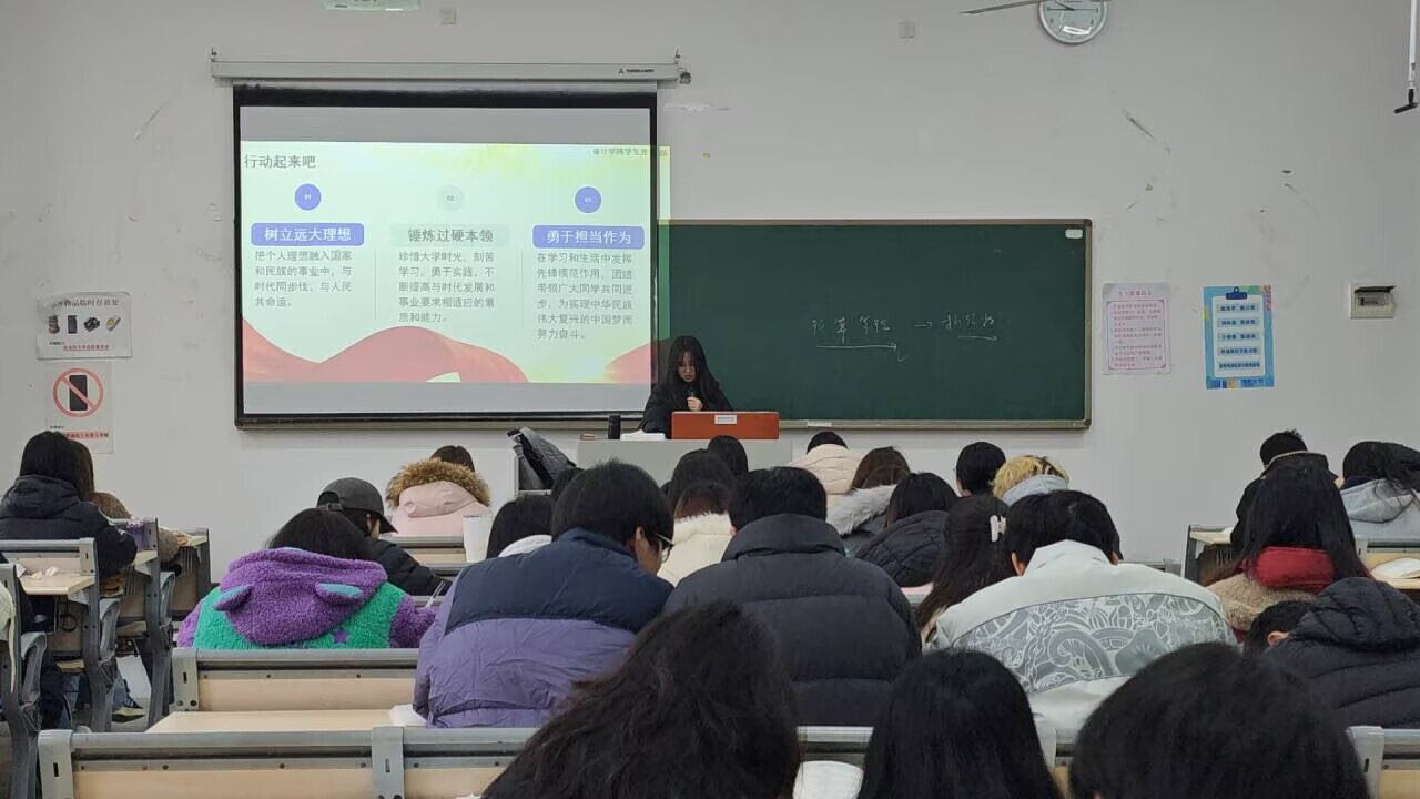 为深入学习贯彻二十届四中全会精神,筑牢育人根基,引导大一新生准确把握会议核心要义与实践要求,12月23日,在党总支的指导和引领下,会计学院学生第一党支部组织党员代表走进大一年级,开展了二十届四中全会精神微党课宣讲活动。本次活动共计650余人参加,旨在通过面对面、分班级的宣讲形式,让全会精神深入人心。