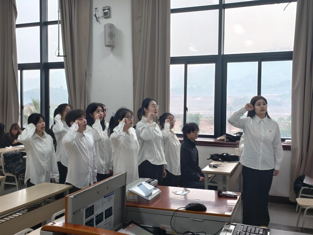 随着介绍人发言结束,大会进入投票表决环节,经表决,陈鹏骏、徐敏等9名发展对象转为预备党员。会议最后,慕丽坪同志带领全体发展对象进行宣誓,誓言铮铮,彰显着他们对党的忠诚与担当。随着国际歌歌声响起,本次支部大会圆满落下帷幕。