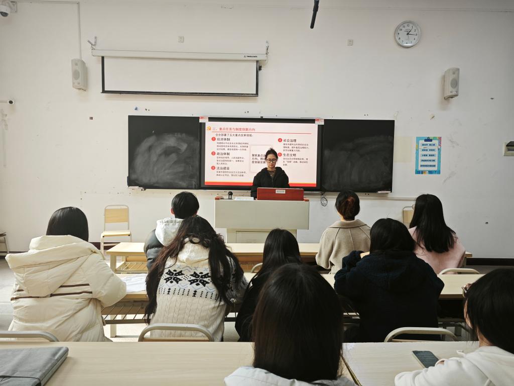 学生党员代梦芸号召同学们将全会精神融入日常学习与实践中,以党员标准严格要求自己,把个人成长融入国家治理现代化进程,以实际行动践行青年使命。活动现场气氛热烈,同学们认真聆听、专心思考,纷纷表示,将在今后的学习与生活中自觉践行全会精神,努力锤炼专业本领,积极投身治理实践,为推进国家治理体系和治理能力现代化贡献青春智慧与力量。