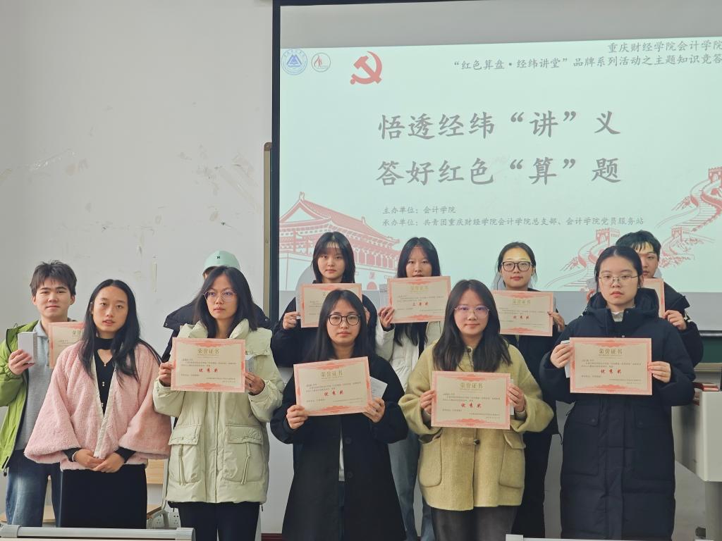 为深入贯彻落实习近平新时代中国特色社会主义思想,推动“红色基因”与财会专业教育深度融合,锤炼青年学子专业素养与创新能力,重庆财经学院会计学院党总支充分发挥政治引领与组织优势,指导学生党支部、会炬财锋服务团、党员服务站,联合教师“双带头人”工作室,开展“红色算盘·经纬讲堂”品牌系列活动。12月9日-11日,该系列活动的【经纬·融合篇】红色案例工作坊活动成功举办。会计学院学生第一党支部书记黄洁、第二党支部书记谢雨贝、专职辅导员古予馨,以及学生党员、入党积极分子、优秀学生代表等共同参与,在竞技比拼与案例研讨中夯实根基、体悟精神。