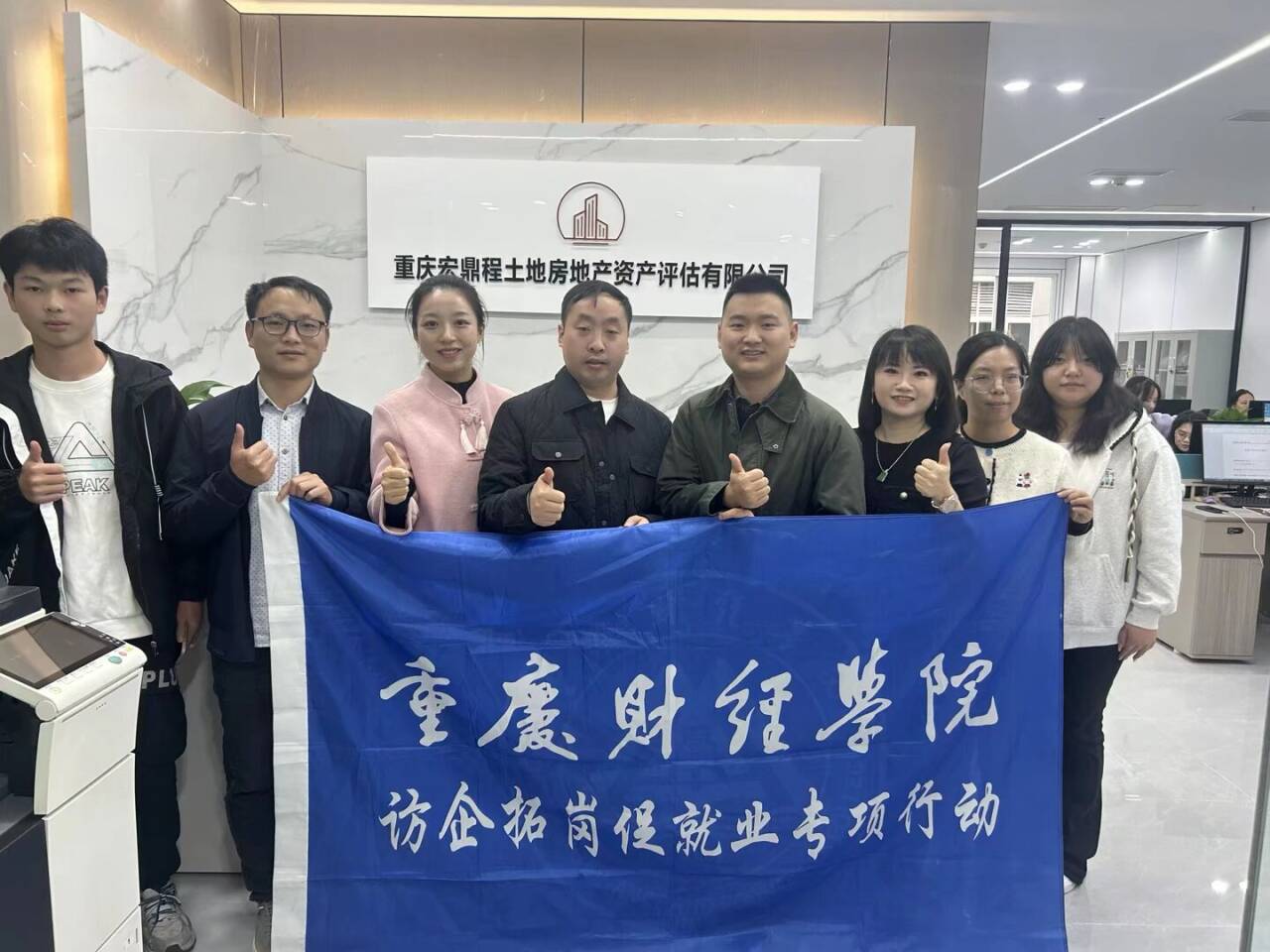 为深入贯彻落实就业优先战略,深化产教融合及校企合作,拓宽学生就业渠道,11月5日,会计学院党总支副书记冉光波、财务管理系主任胡婷婷、就业专员何春、资产评估专业教师周玲一行赴重庆宏鼎程土地房地产资产评估有限公司开展交流,总经理廖龙豪、人事部主任秦丽热情接待并全程参与座谈。
