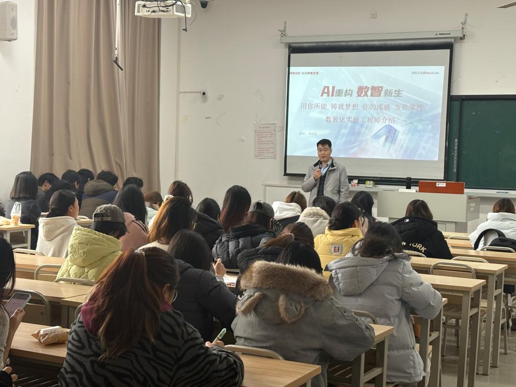 李志良总监与王晓可顾问则聚焦于《企业数字化转型与职业规划体系》,系统解读了数字化转型的内涵、趋势及其对人才能力结构带来的深刻变革。他们详细介绍了用友BIP平台及其在财务、供应链、人力资源等领域的应用场景,分析了财务岗位从“核算记录”向“业务伙伴”转型的必然趋势,并对实施工程师等新兴岗位的能力要求、成长路径进行了清晰梳理,为同学们描绘出清晰的职业发展蓝图。