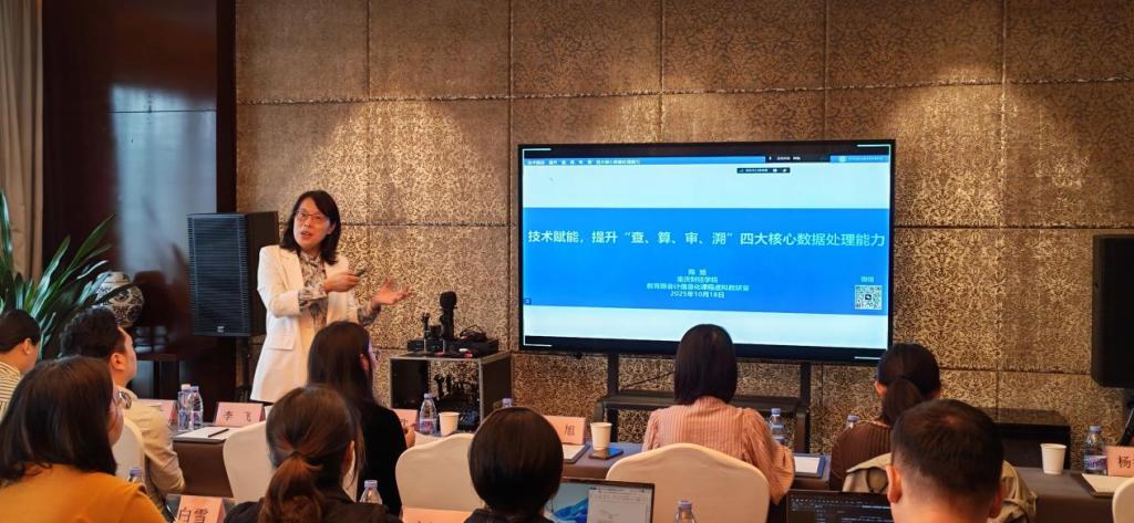 在专题报告环节,重庆财经学院副校长陈旭教授作了题为《技术赋能,提升“查、算、审、溯”四大核心数据处理能力》的首场报告。作为国家级一流课程负责人,她系统阐释了如何以SQL数据技术为赋能核心,重塑会计教学内容与方法。她指出,SQL技术不仅是实现高效“查、算、审、溯”数据能力的关键工具,更是推动业财融合、培养学生数据思维与业务洞察力的重要抓手,为课程体系重构提供了清晰的实施路径。