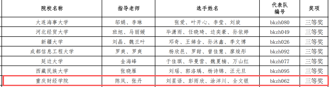 优异成绩的取得源于扎实的培养与选拔机制。学院构建了“校赛—省赛—国赛”三级竞赛体系,通过校内选拔与重点培育,由刘星语、彭雨欣、涂洋川、全文银四位同学组成的代表队先后荣获校赛一等奖、省赛一等奖(总排名第3名),并最终代表重庆跻身国赛舞台,展现了扎实的专业功底与良好的综合素养。