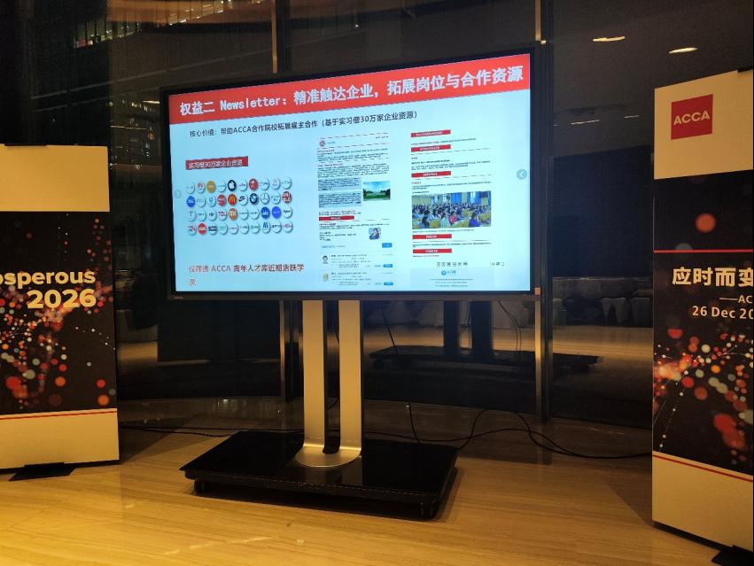 2025年12月26日晚,由ACCA(特许公认会计师公会)主办的“应时而变,育见未来——ACCA高校年度发展论坛”在成都尼依格罗酒店成功举行。我院产业院长鲍晓敏作为特邀嘉宾出席本次盛会,与来自ACCA官方、全国多所合作高校的领导、专家及知名企业代表齐聚一堂,围绕国际会计发展动态、高素质人才培养与学生职业发展等核心议题展开深入研讨,为学院未来发展汲取前沿智慧。